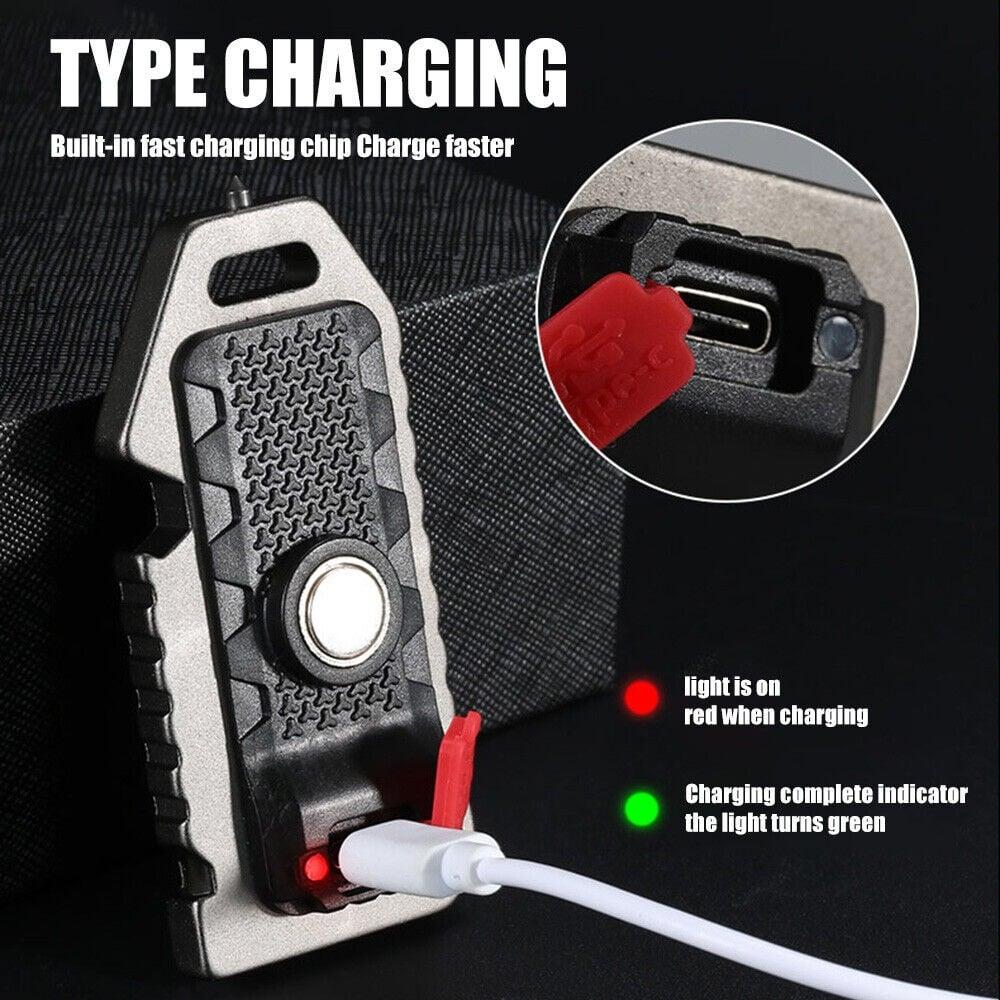 كشاف ميدالية صغير بإنارة قوية من شريحة COB، يوفر ٤ أوضاع إضاءة (قوي، خافت، وميض أحمر وأزرق، وضوء أبيض)، يُشحن عبر منفذ Type-C، عملي للرحلات والاستخدام اليومي.