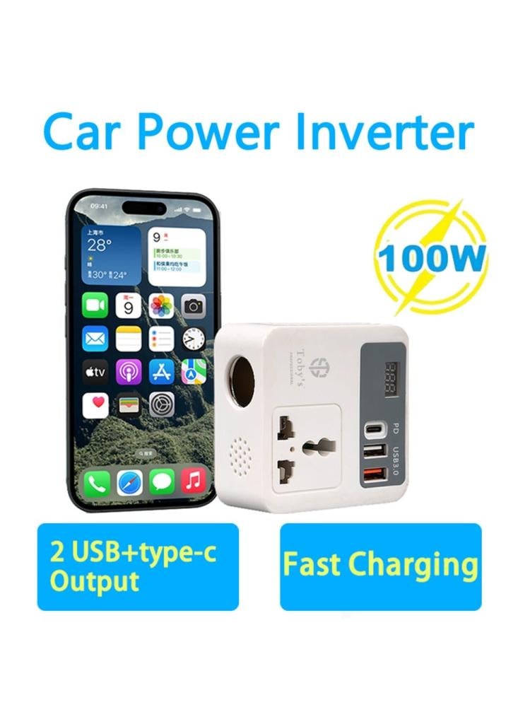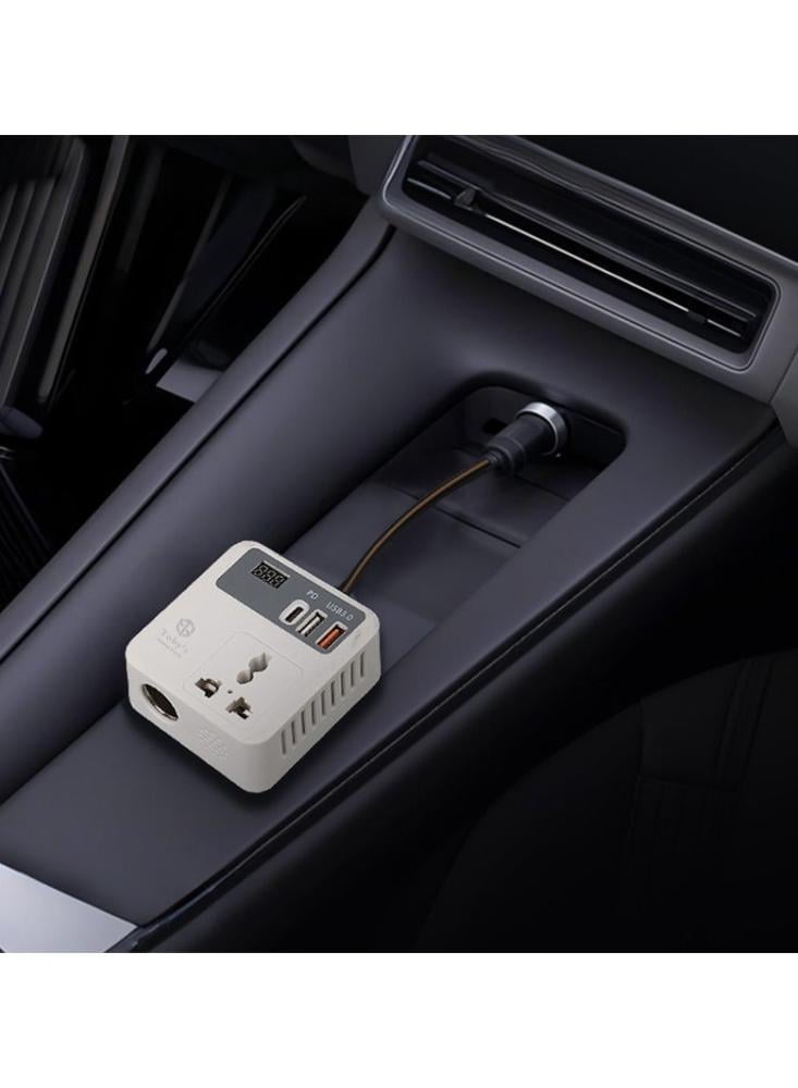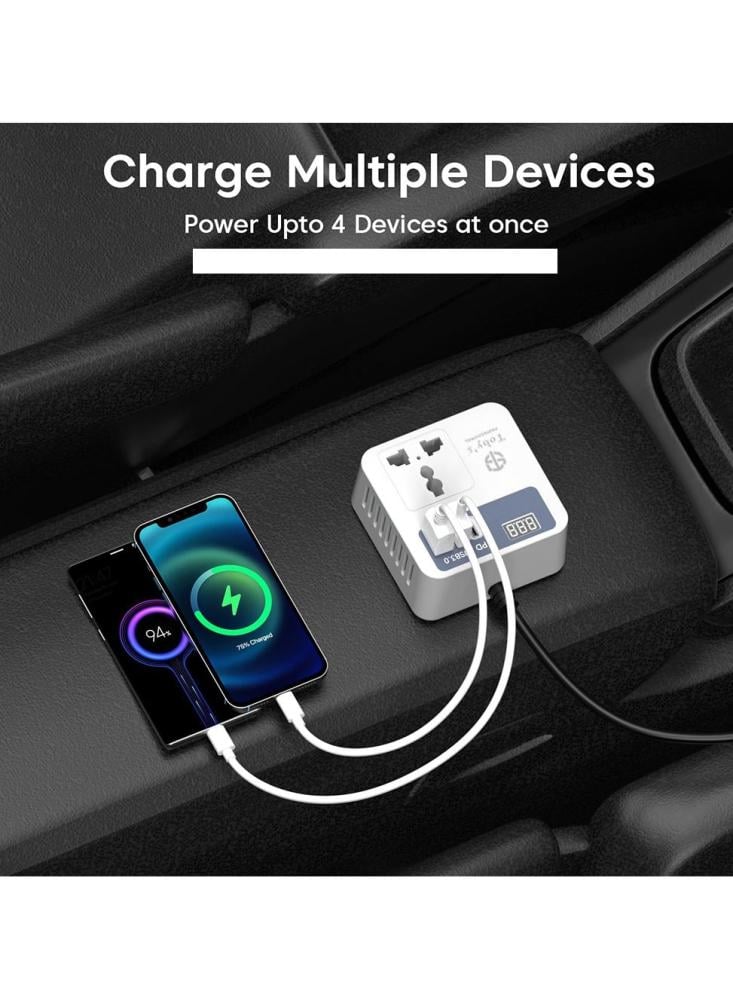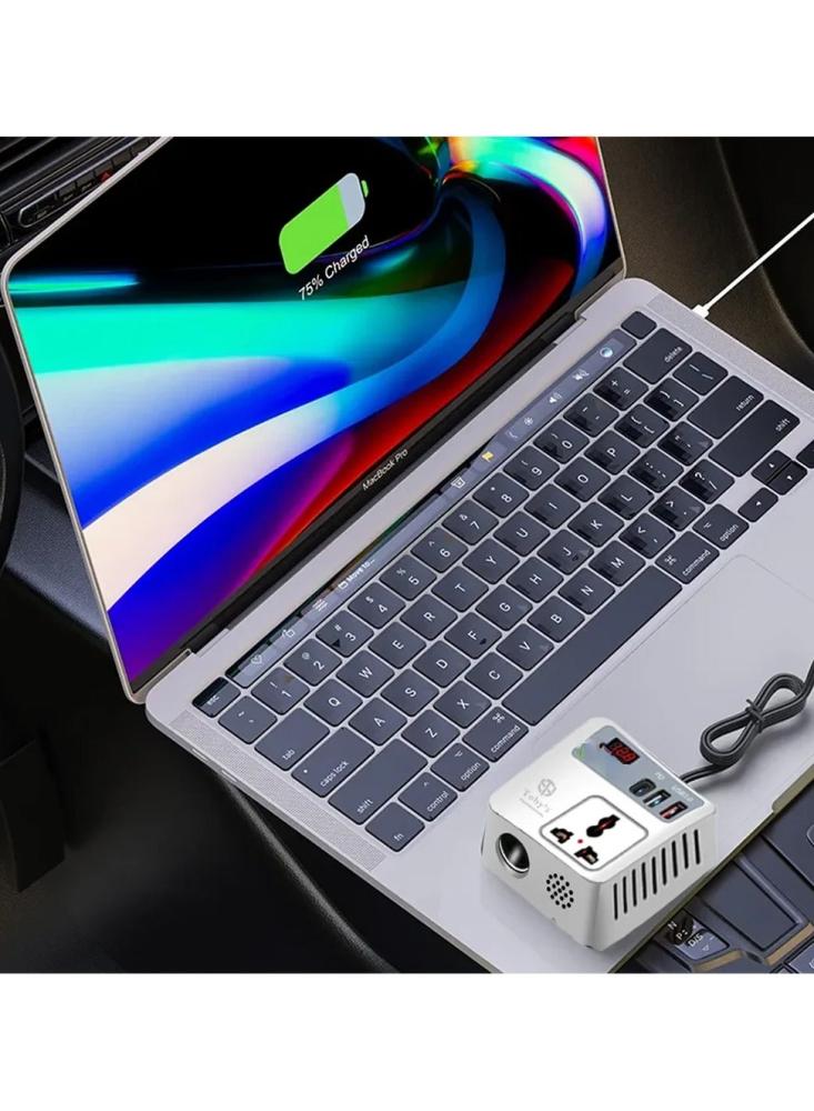 محول طاقة عملي للاستخدام داخل السيارة، يحوّل كهرباء ولاعة السيارة 12 فولت إلى منافذ متعددة لتشغيل وشحن الأجهزة الإلكترونية أثناء السفر والرحلات البرية والطوارئ.